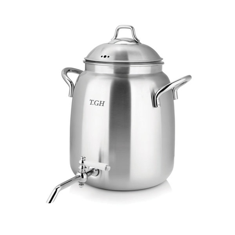 تهیه آبجوش برای نوشیدنی های گرم مثل چای ، در محل های پرجمعیت نیازمند کتری بزرگ میباشد ، شرکت تی جی اچ با طراحی کتری هیمالیا این نیاز را برطرف کرده است ، این کتری ماسب برای استفاده محل های پر جمعیت مثل : اداره جات ، هیئت ها ، منزل های پر جمعیت میباشد ، ظرفیت این کتری 10 لیتر میباشد که معادل 40 لیوان 250 سی سی آب جوش در اختیار شما قرار خواهد داد ، ارتفاع این کتری شیردار بدون احتساب درب 27 سانت میباشد ، بدنه این کتری از ورق استیل ضد زنگ مات با ضخامت 1 میل ساخته شده است که از کیفیت ساخت بالایی برخوردار بوده و ضد زنگ میباشد ، دسته های ایت کتری شیردار 10 لیتری کاملا فلزی بوده و بسیار محکم به بدنه متصل شده است ، این محصول دارای دو درب بصورت مجزا میباشد (یکی مخصوص قرار دادن قوری ، دیگری درب کتری ) ، این محصول دارای 15 ضمانت شرکت تی جی اچ میباشد.